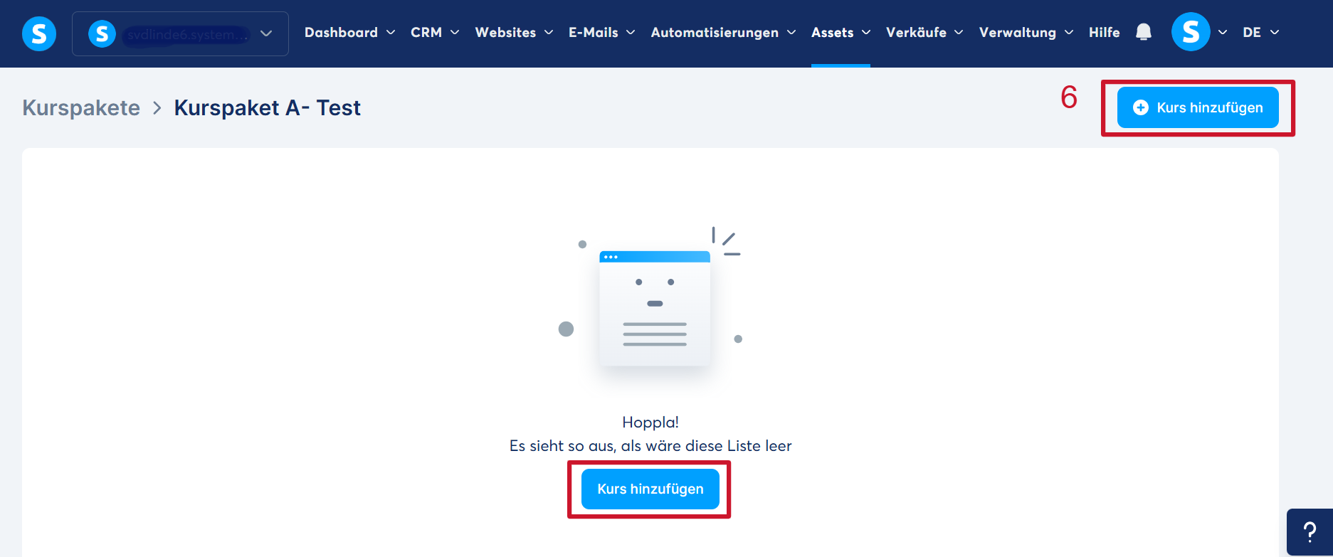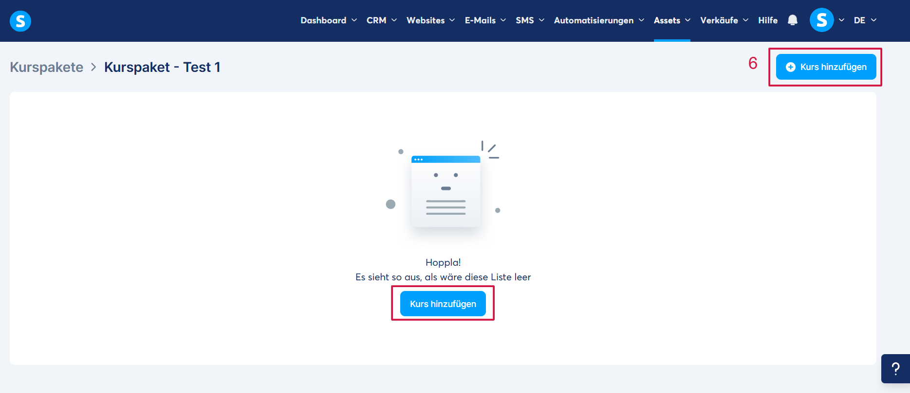 Klicken Sie auf die Schaltfläche „Kurs hinzufügen“ (6).