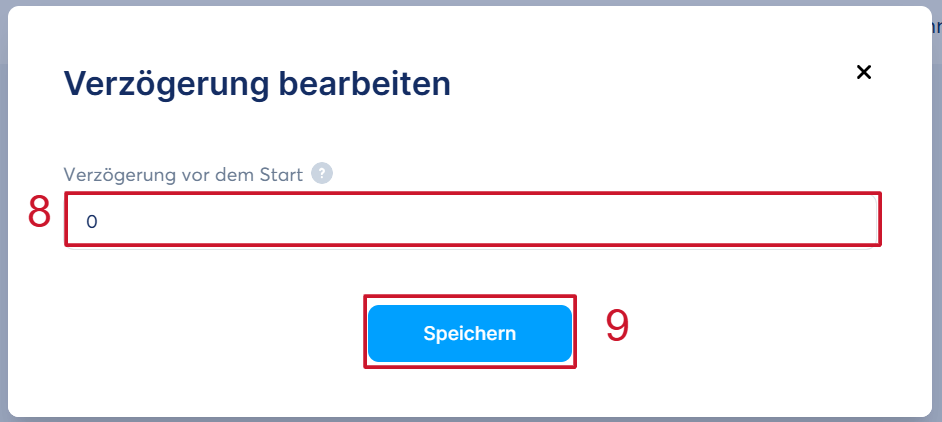 Sobald Sie eine Verzögerung in diesem Parameter (8) eingegeben haben, klicken Sie auf „Speichern“ (9).