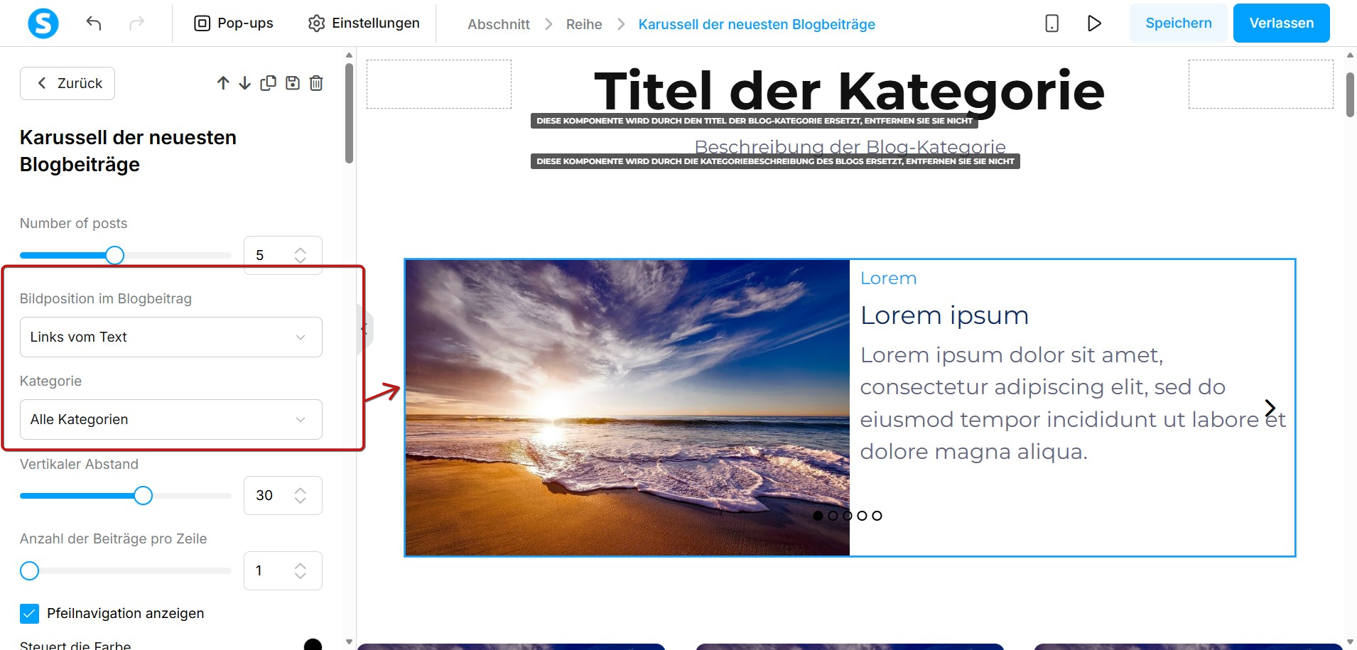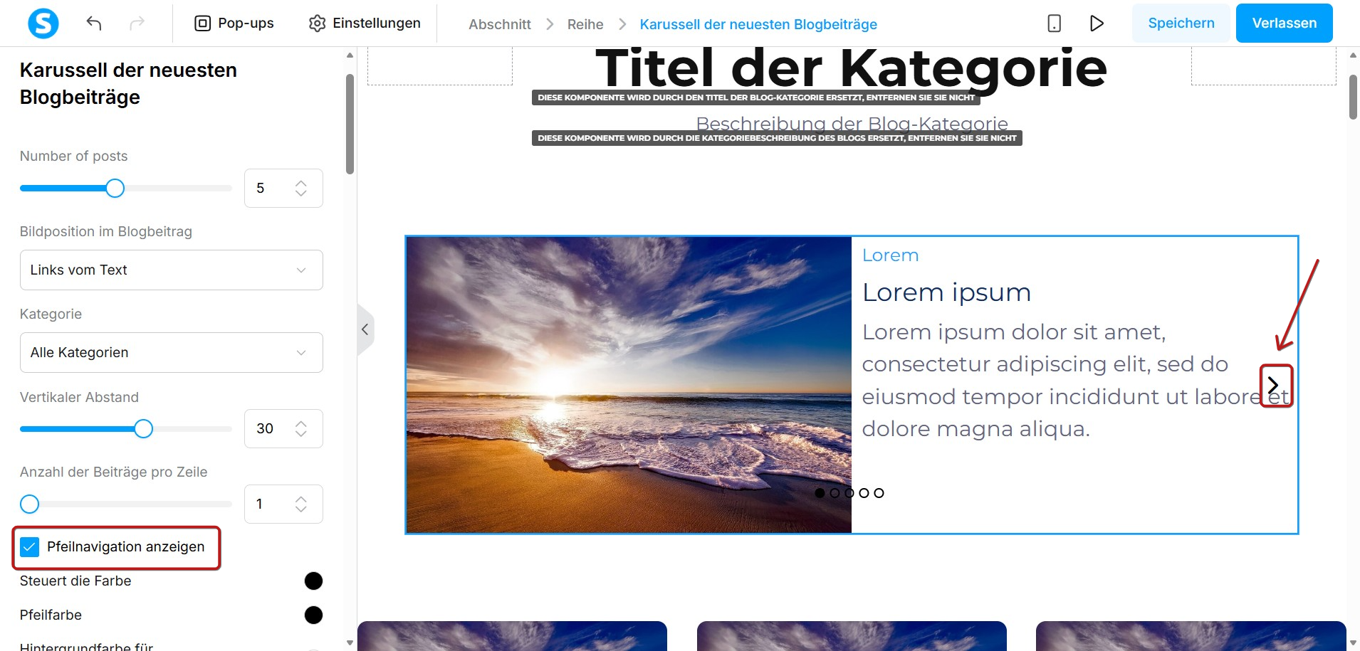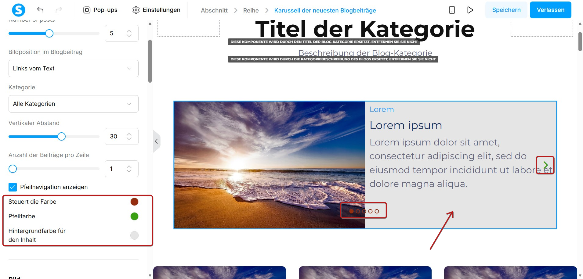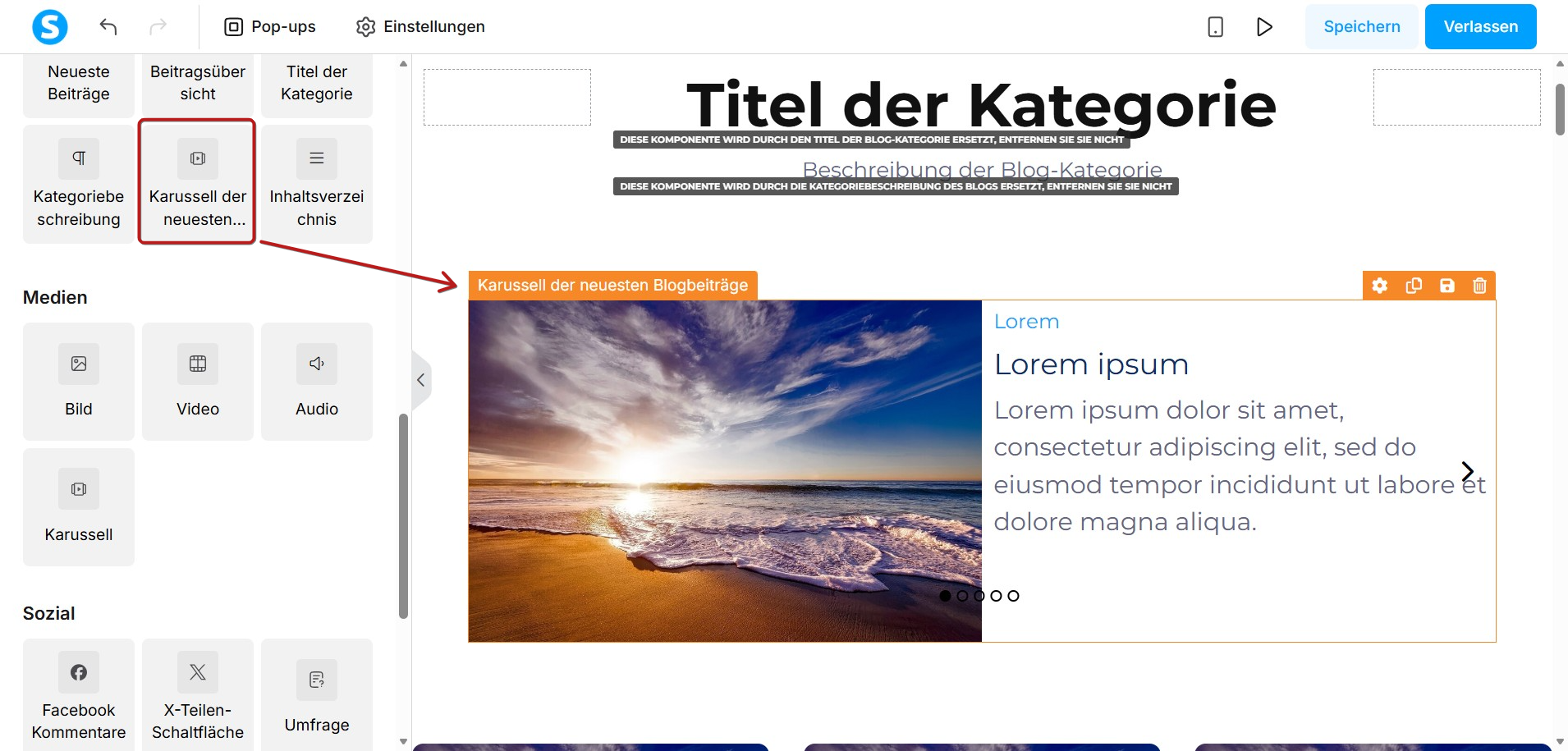So verwenden Sie das Karussell Element für den neuesten Blogbeitrag