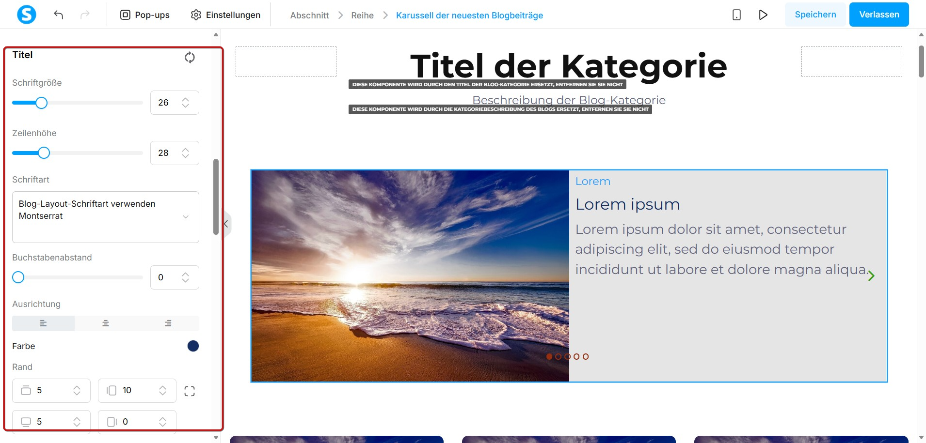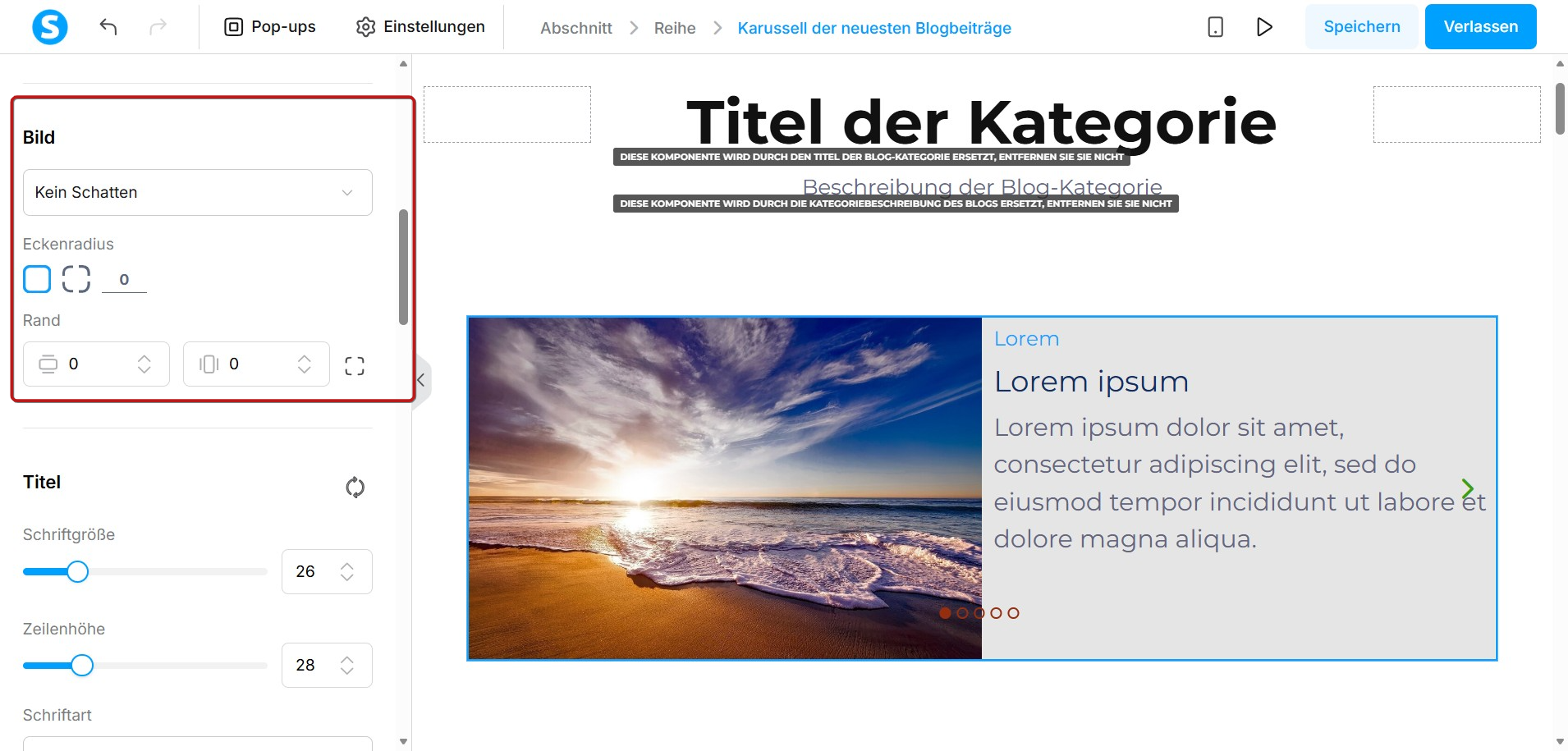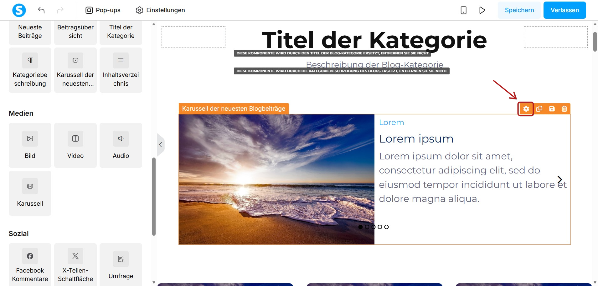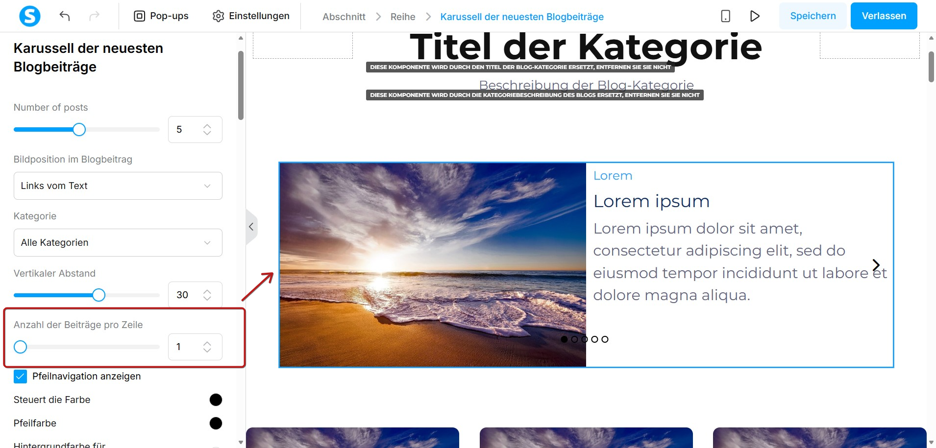 So verwenden Sie das Karussell Element für den neuesten Blogbeitrag