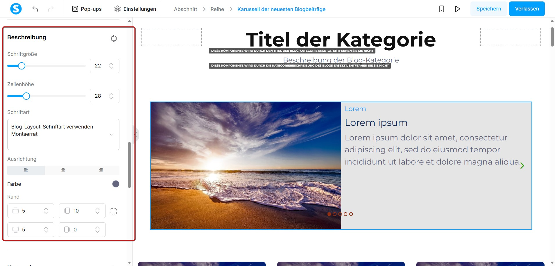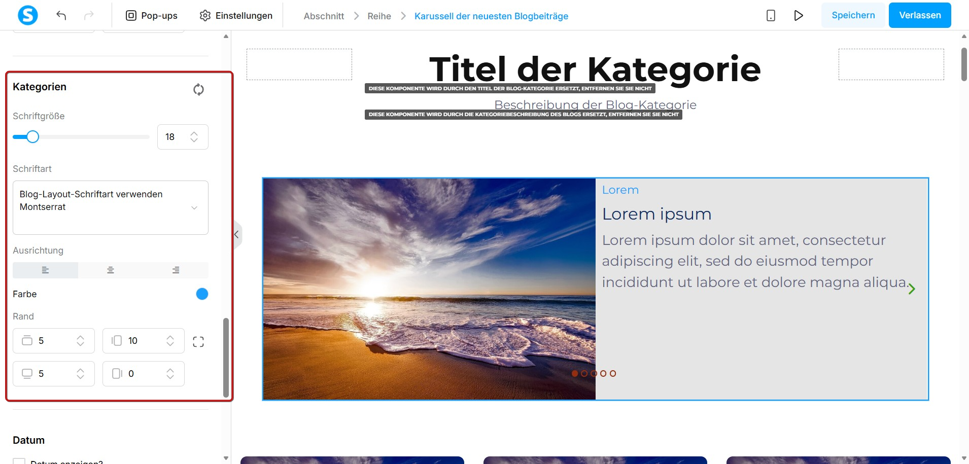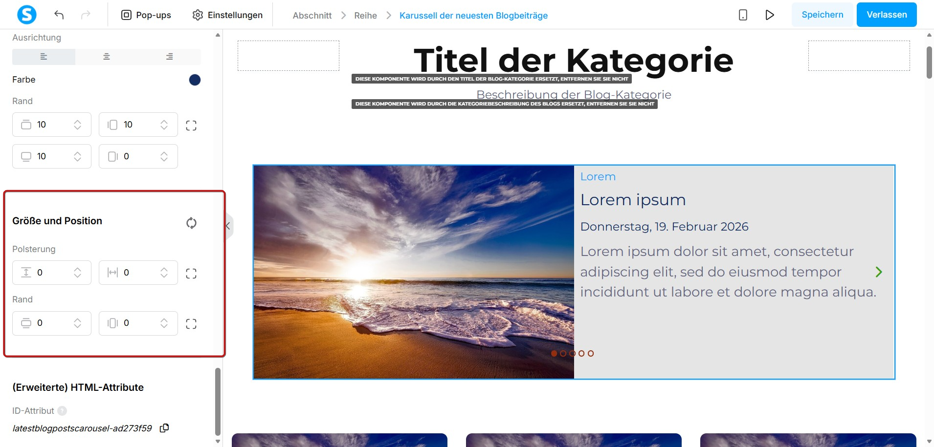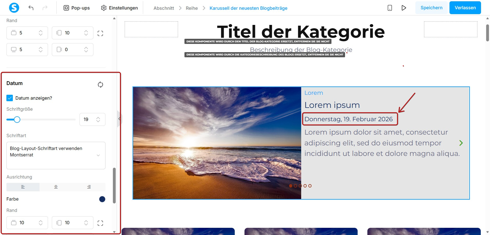 So verwenden Sie das Karussell Element für den neuesten Blogbeitrag