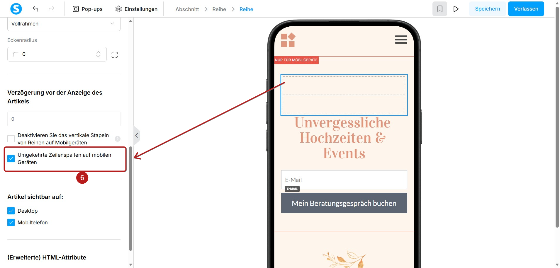 Sie können die Reihenfolge der Spalten auf Mobilgeräten auch umkehren, indem Sie das entsprechende Kontrollkästchen aktivieren (6).