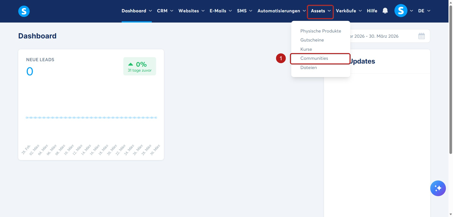 Gehen Sie zum Reiter Assets und klicken Sie dann auf Communities (1).