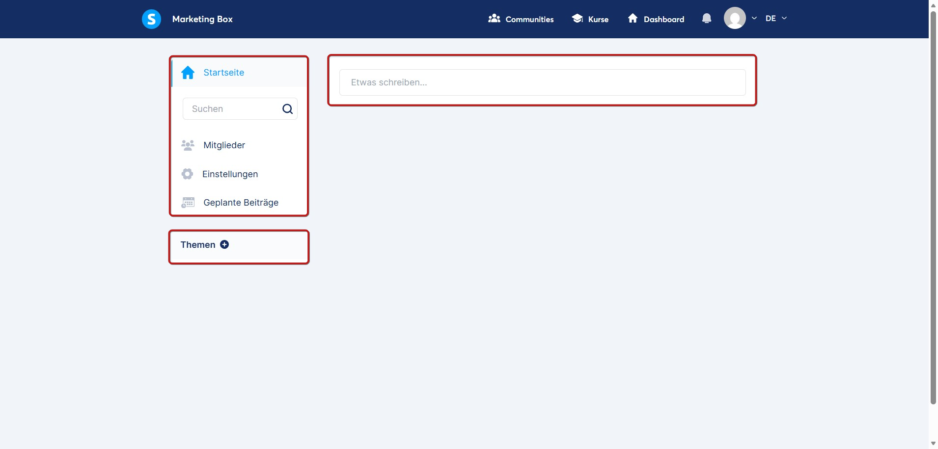 - Startseite: Hier können Sie Beiträge hinzufügen und Themen erstellen