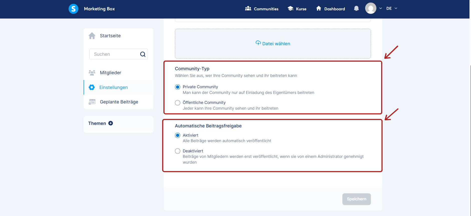 - Einstellungen: Verwaltung der Community-Einstellungen