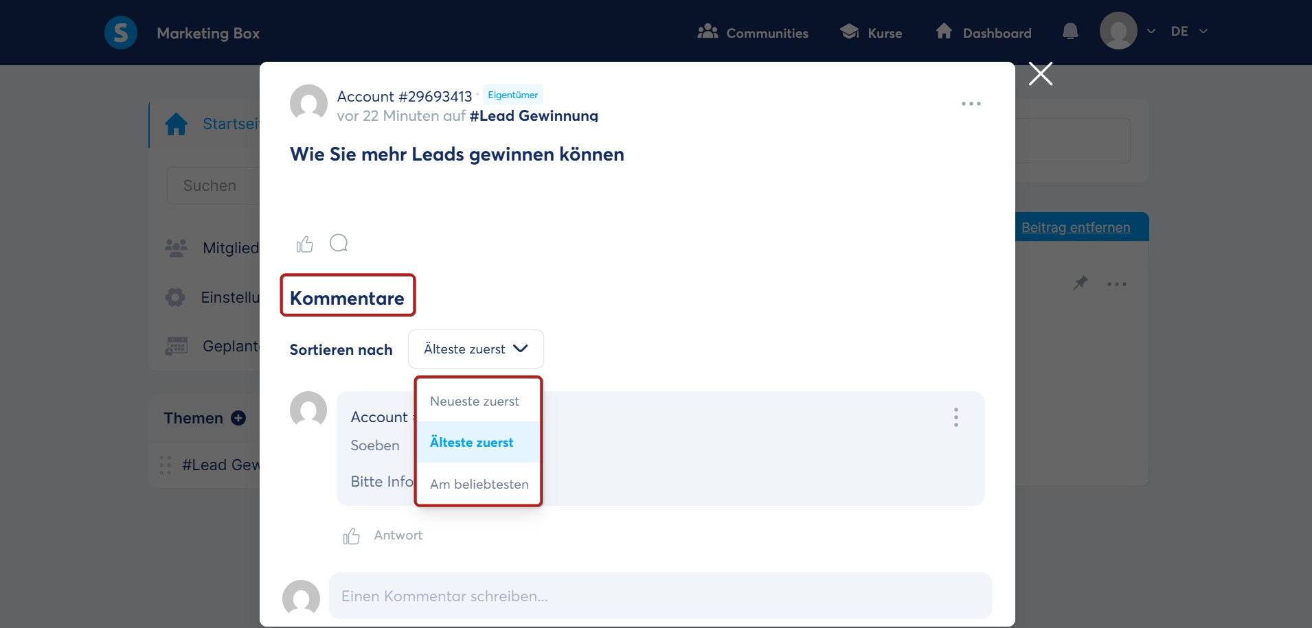 1) Alle Community-Mitglieder können Beiträge erstellen und Kommentare hinterlassen.