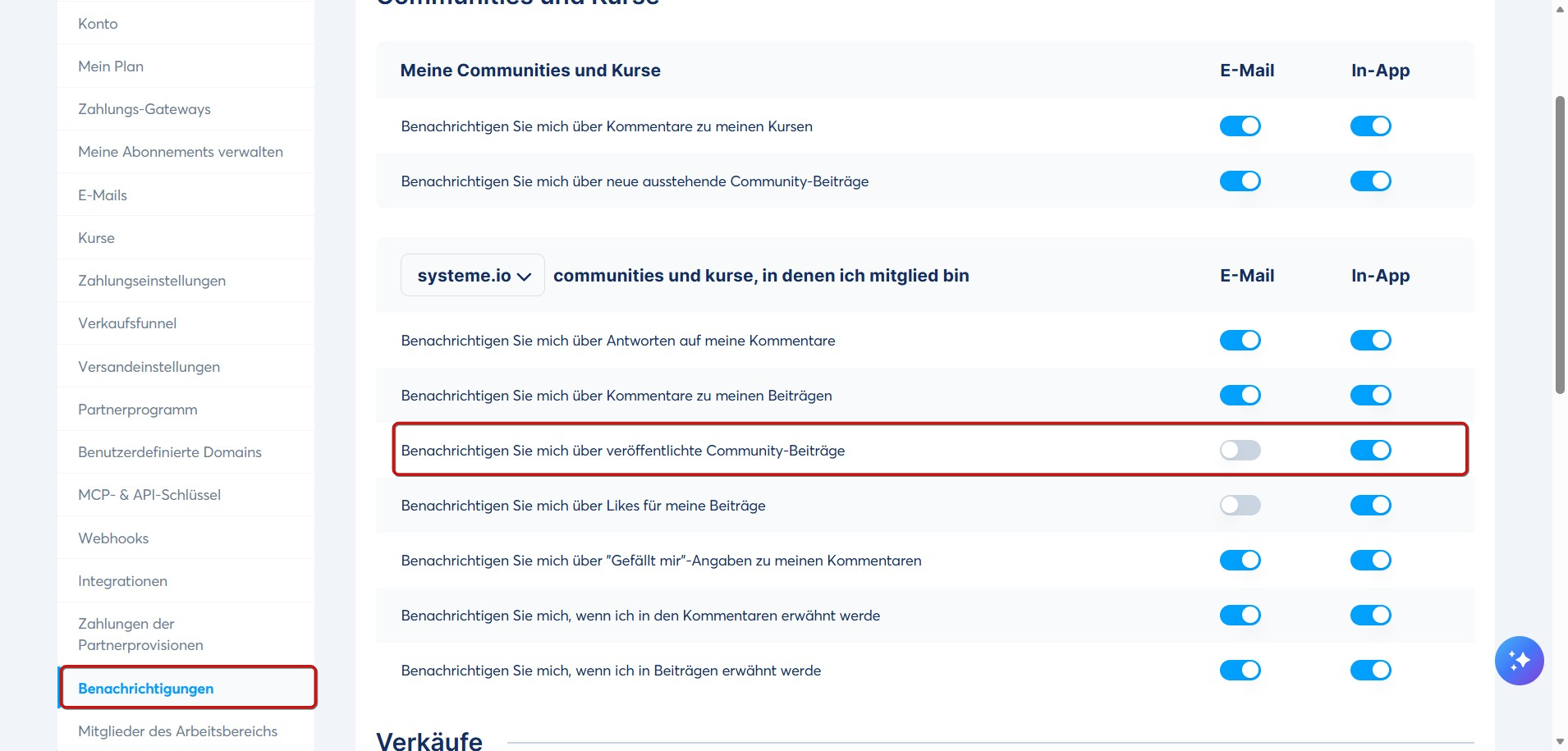 2) Um Benachrichtigungen zu erhalten, wenn ein Mitglied auf Ihre Beiträge in der Community reagiert, aktivieren Sie die Option Benachrichtigen Sie mich über veröffentlichte Community-Beiträge in den Benachrichtigungseinstellungen.