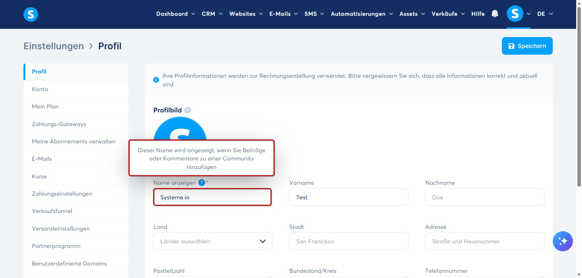 Nachdem Sie diese Angaben gemacht haben, klicken Sie auf Speichern (3).