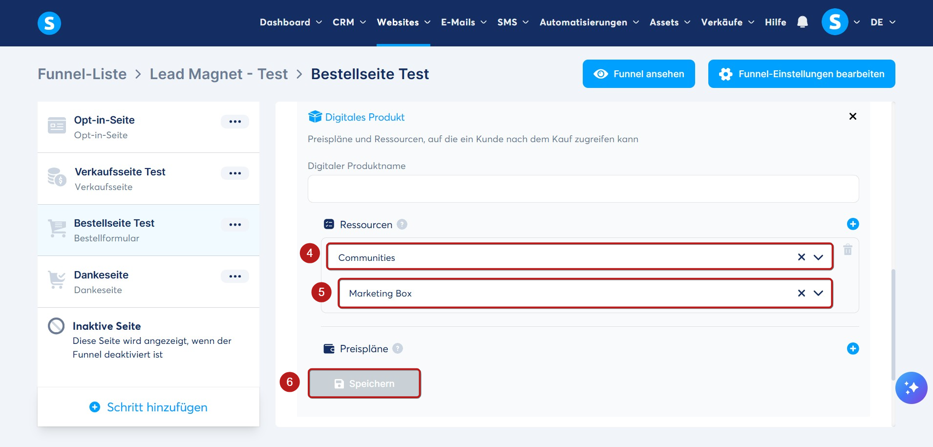 Klicken Sie abschließend auf Speichern (6), um die Änderungen zu sichern.