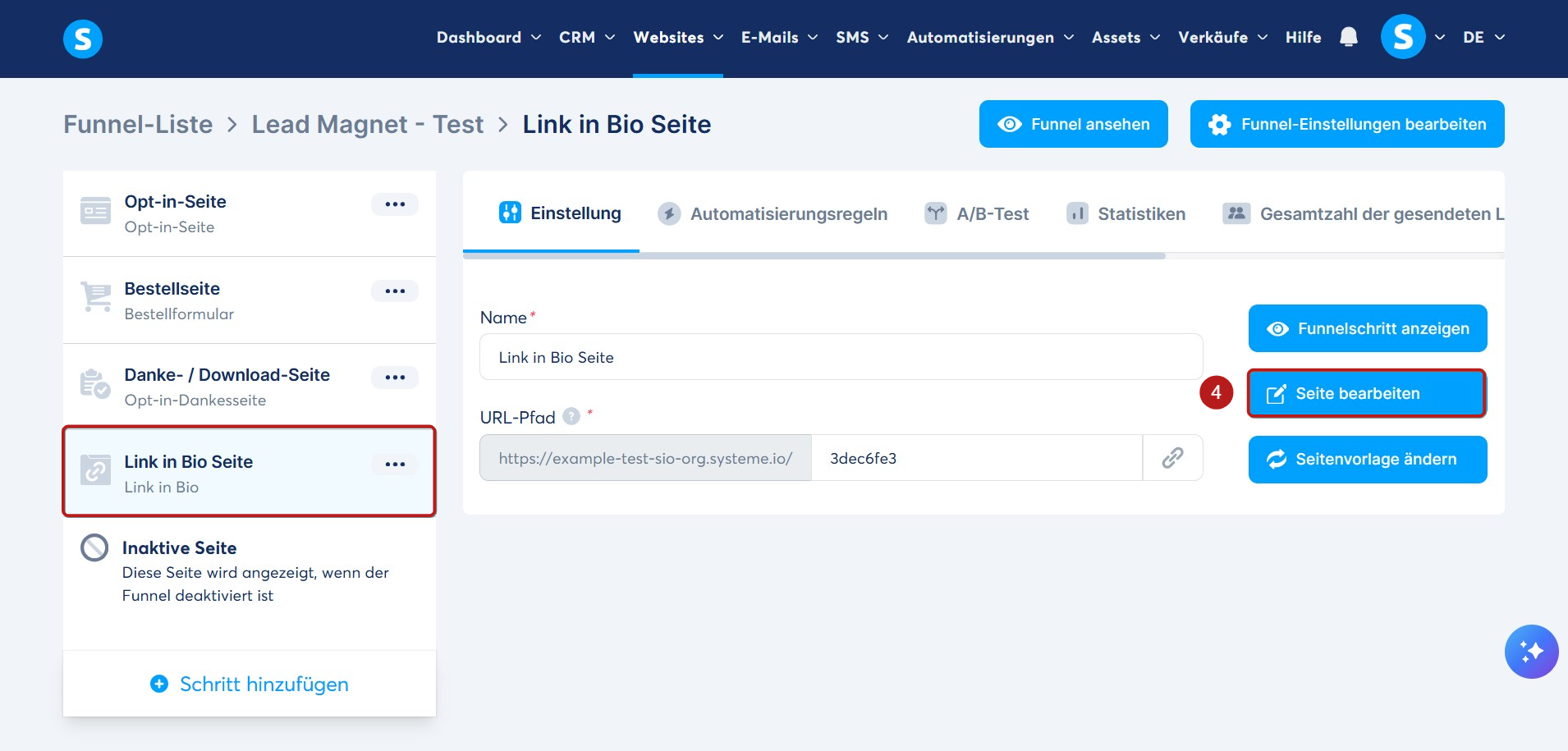 Klicken Sie abschließend auf Seite bearbeiten, um den Editor zu öffnen und Ihre Seite anzupassen (4).