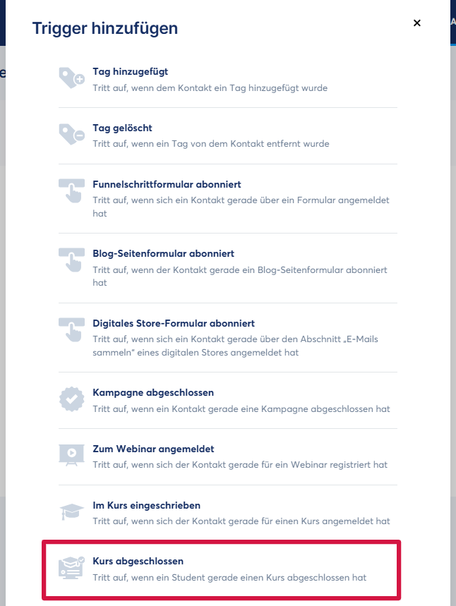 1. Den Trigger "Kurs abgeschlossen" verwenden: