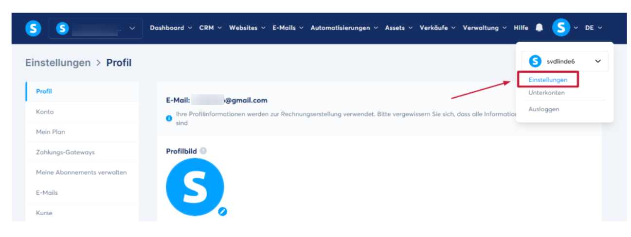 1. Klicken Sie auf Ihr Profilbild und gehen Sie dann zum Abschnitt "Einstellungen".