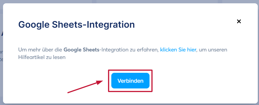 4. Ein erstes Pop-up-Fenster erscheint, in dem Sie auf „Verbinden“ klicken müssen, um die Integration von Google Sheets zu starten.