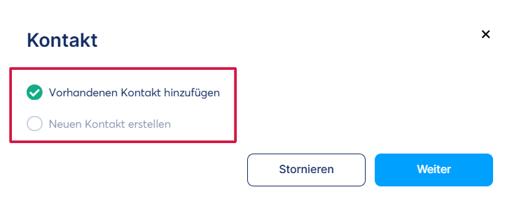 Hinweis: Sie können einen bestehenden Kontakt hinzufügen, indem Sie ihn aus der verfügbaren Kontaktliste auswählen, oder einen neuen Kontakt hinzufügen, indem Sie seine Informationen manuell eingeben.