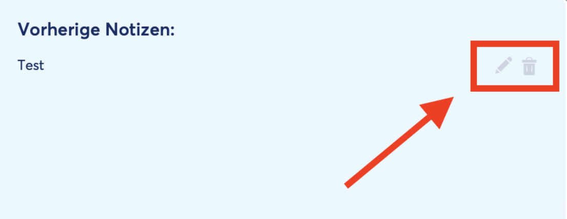 Zusätzlich können Sie vorhandene Notizen mit den Symbolen neben Ihren Notizen (siehe Abbildung unten) bearbeiten, anheften oder löschen.