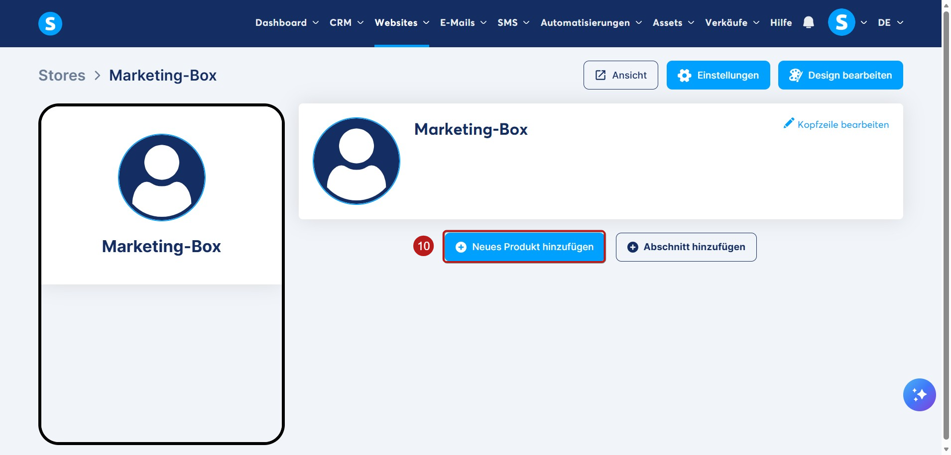 Um ein Produkt zu erstellen, müssen Sie auf Neues Produkt hinzufügen klicken (10).