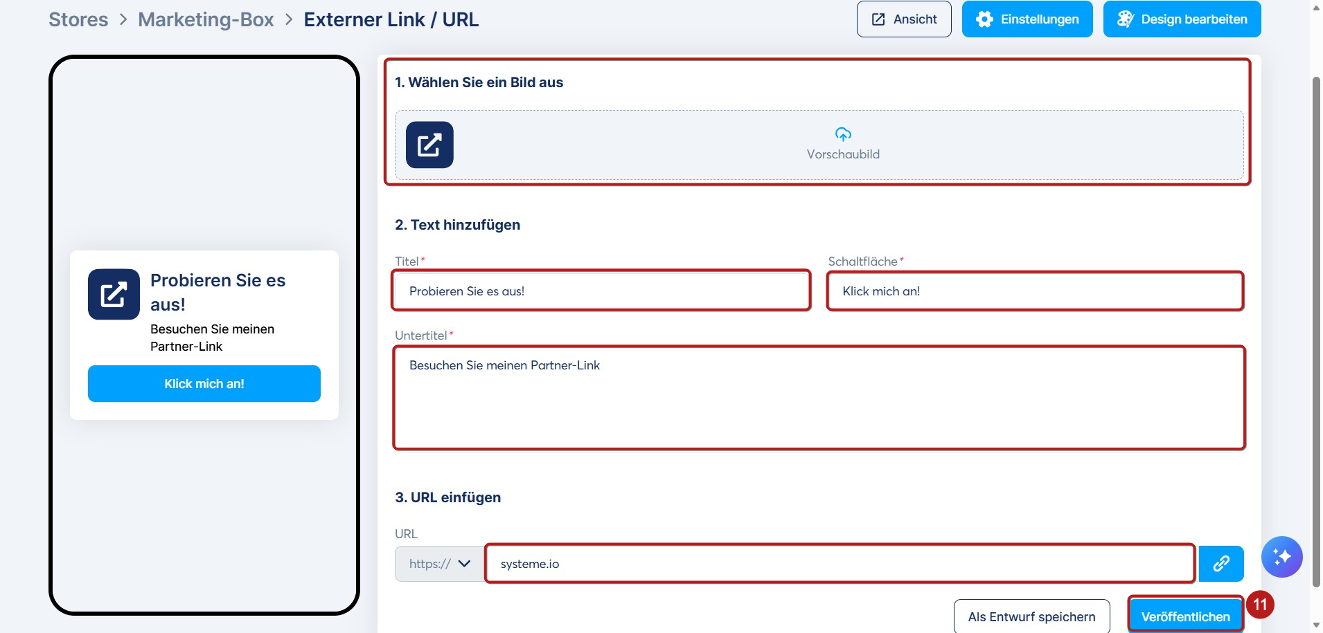 Klicken Sie abschließend auf Veröffentlichen (11), damit es in Ihrem Shop sichtbar wird.