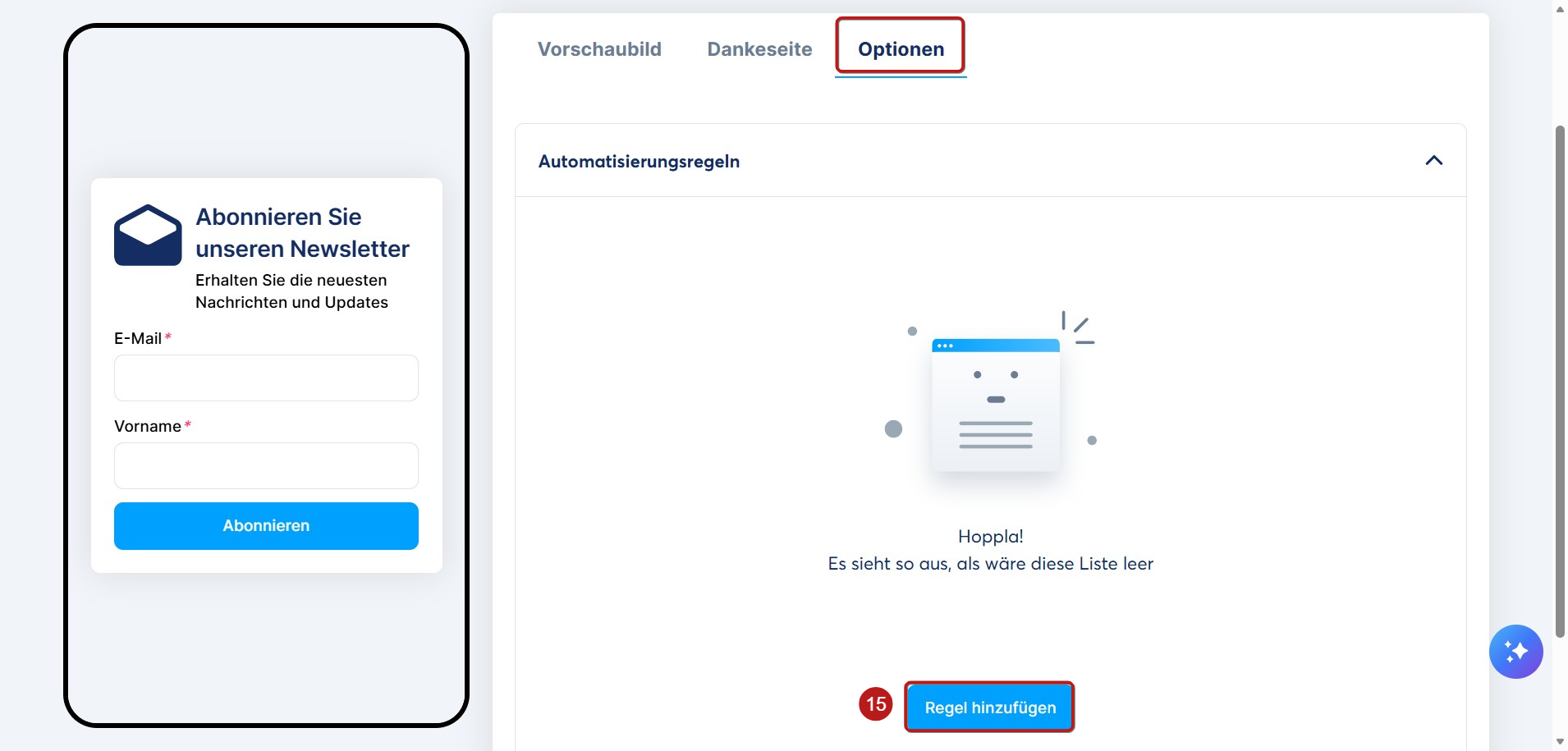 Um eine Regel hinzuzufügen, klicken Sie auf Regel hinzufügen (15).