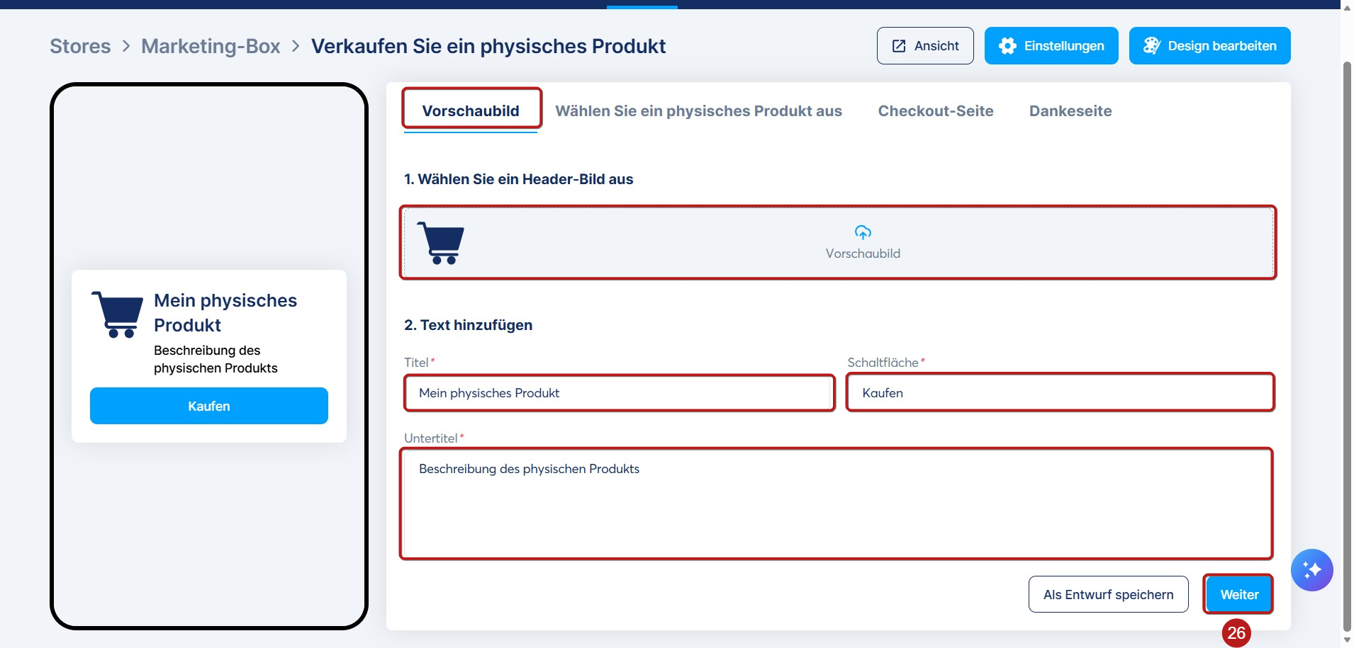 Klicken Sie anschließend auf Weiter (26), um Ihre Änderungen zu speichern und zum zweiten Tab zu gelangen.