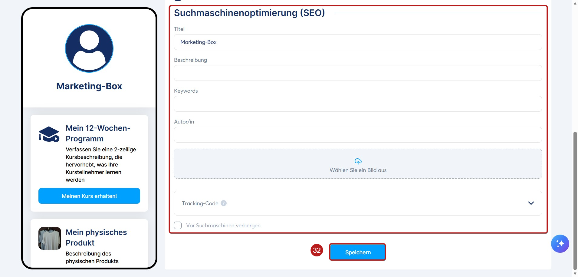 Klicken Sie abschließend auf Speichern (32), um die Änderungen zu sichern.