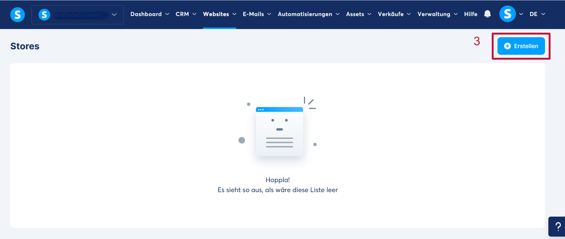 Klicken Sie auf „Erstellen“, um Ihren digitalen Store zu erstellen (3).