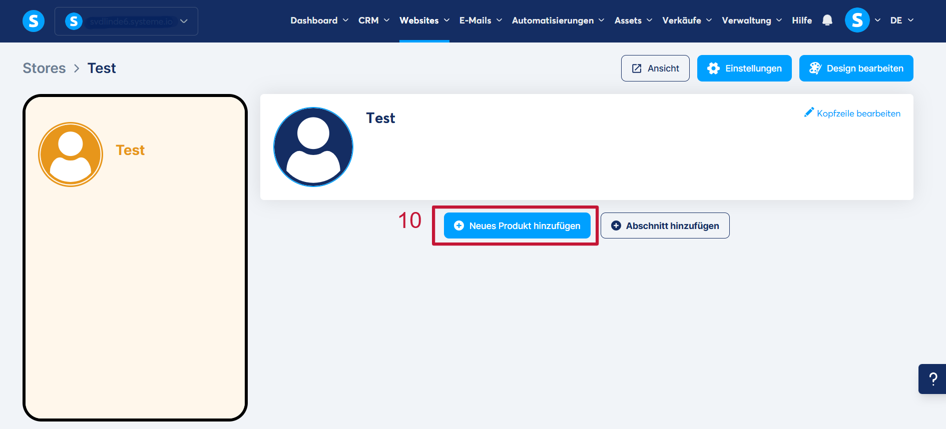 Um ein Produkt zu erstellen, müssen Sie auf „Neues Produkt hinzufügen“ klicken (10).