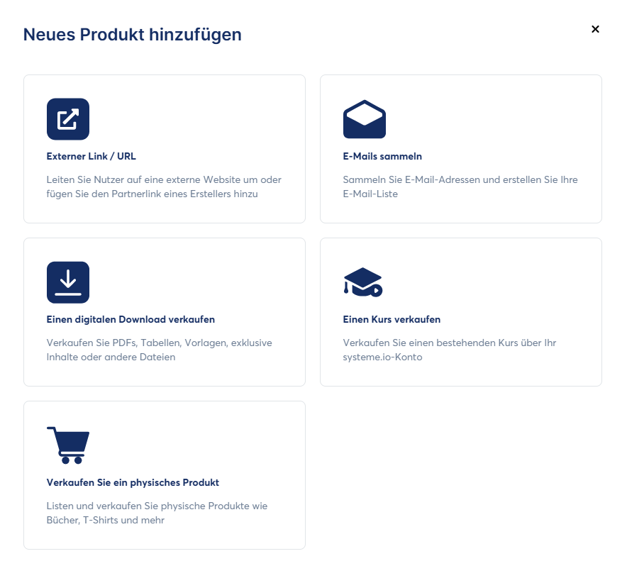 Sie haben die Möglichkeit, verschiedene Produkttypen zu erstellen: