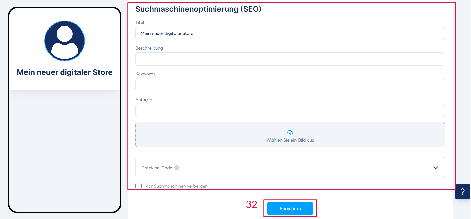 Klicken Sie abschließend auf „Speichern“ (32), um die Änderungen zu sichern.