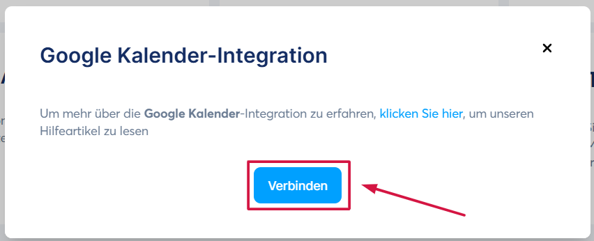 5. Ein zweites Pop-up-Fenster erscheint, in dem Sie auf „Verbinden“ klicken müssen, um die Integration Ihres Google Kalenders zu starten.