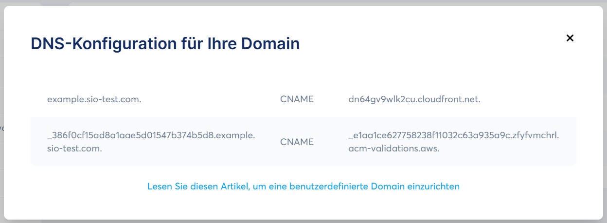 Sobald die beiden CNAMEs korrekt bei Ihrem Hosting-Anbieter hinzugefügt wurden, können Sie ihre Funktionsfähigkeit auf der folgenden Website überprüfen:
