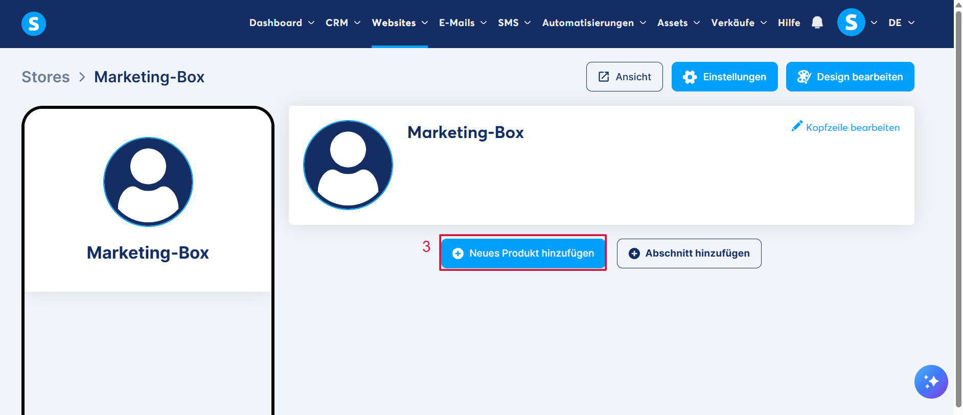 Klicken Sie auf Neues Produkt hinzufügen (3).