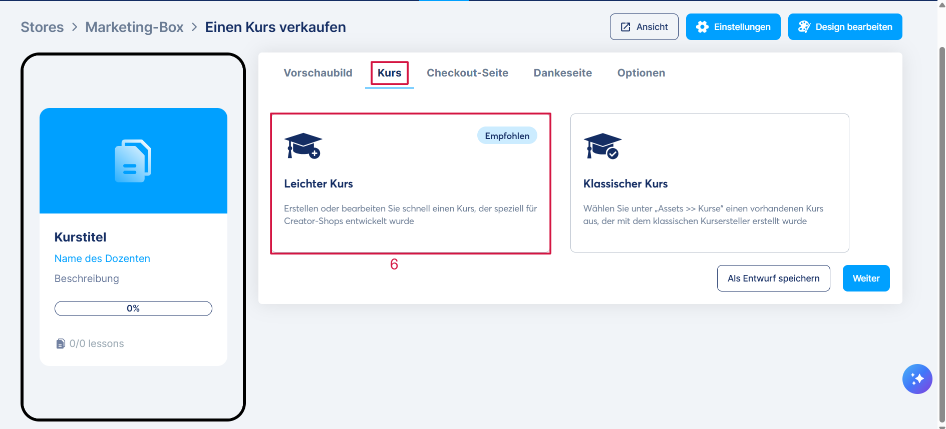 Ein Light-Kurs ist ein vereinfachtes Kursformat, das direkt in Ihrem Creator Store erstellt wird.