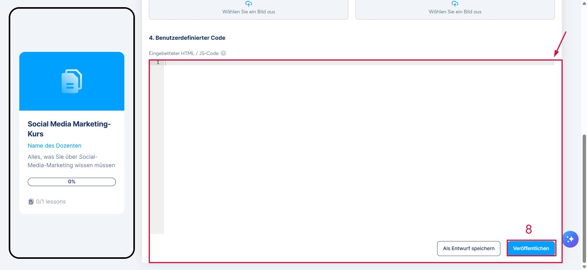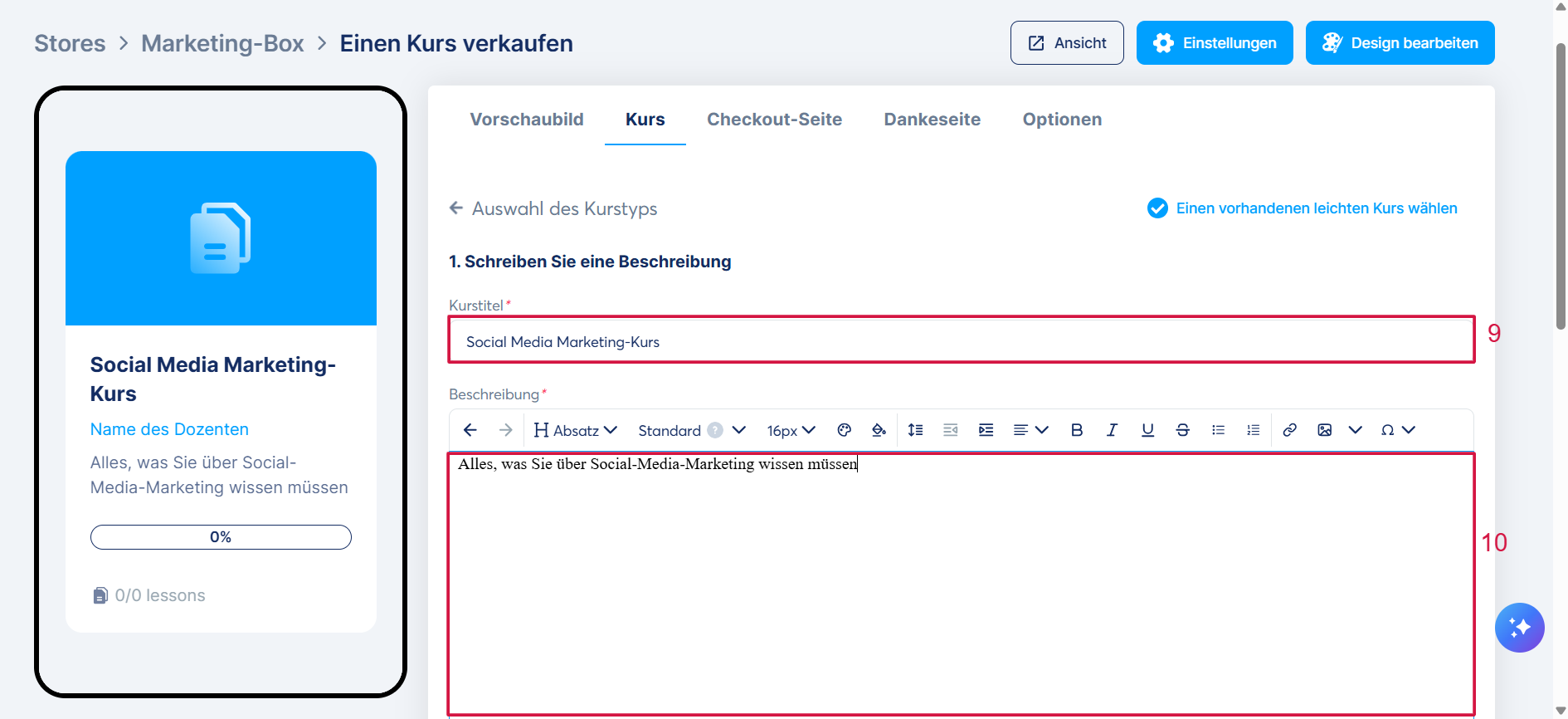 Im Gegensatz zum klassischen Kurs-Builder ist er auf Schnelligkeit und einfache Bedienung ausgelegt. So können Sie Kurse direkt über Ihr Smartphone erstellen und verkaufen.