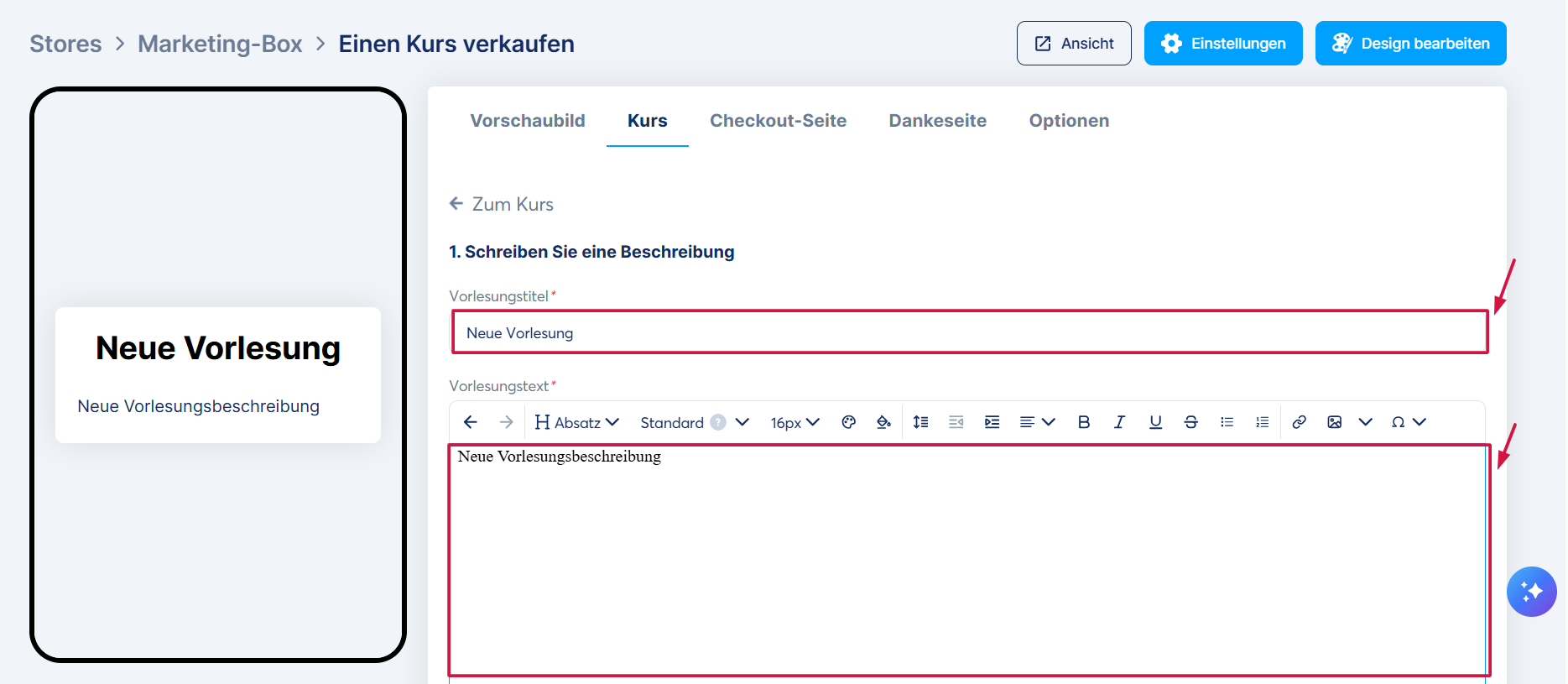 Fügen Sie einen Titel und einen Textkörper für Ihre Vorlesung hinzu.