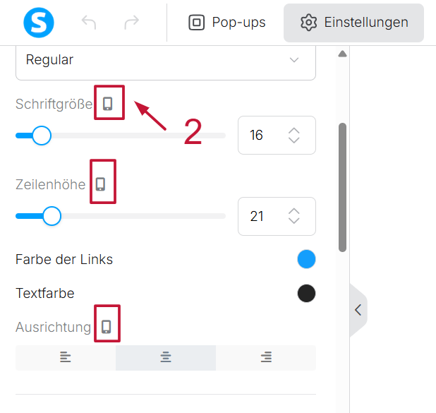 Änderungen an Einstellungen, die das Mobile-Symbol daneben haben (2), werden nur in der mobilen Version vorgenommen und wirken sich nicht auf die Computer-Version aus.